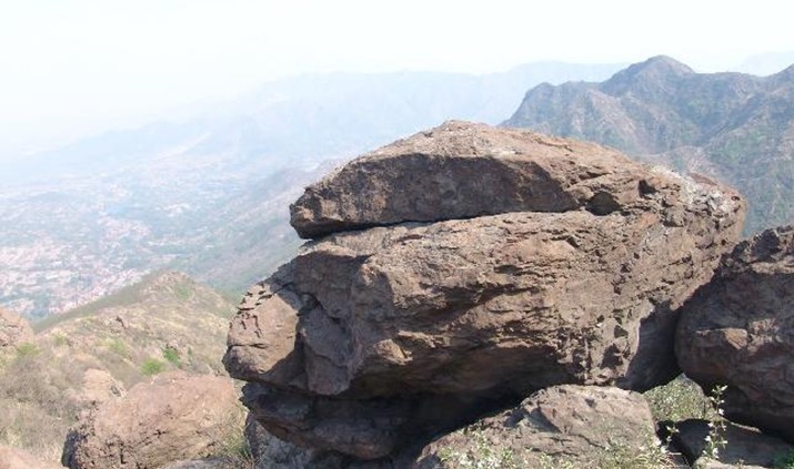 摩訶山峻峰雄峙,大壑深澗,巨石危巖,奇險莫測。頂峰聳入云中,舊曾建有塔和禪院,皆失無考,僅存遺址石墻,尚能勾起人們對其原貌的想象。據(jù)傳山頂寺中,原有一小和尚,腦力遲鈍,數(shù)日僅學(xué)“摩訶”二字。冬天,和尚們下山募化,僅留其守寺,不留食物,待月余歸,但見小和尚仍面色紅潤,問其,則曰:口不絕吟“摩訶”,饑則煮石,食之甘美。“摩訶”山名即由此而得。