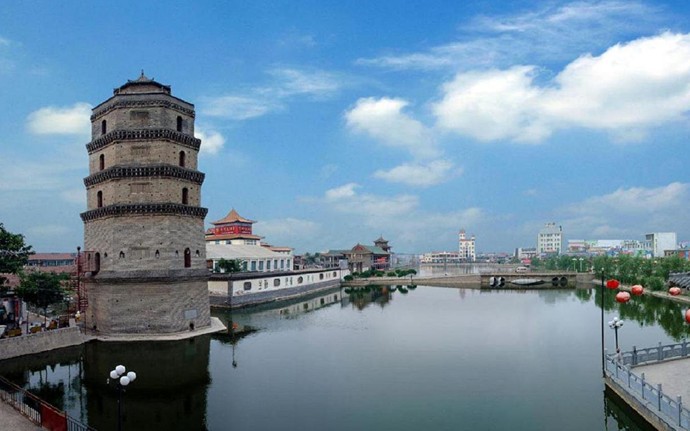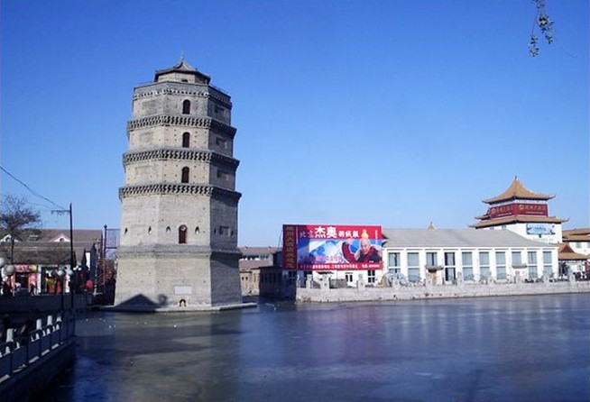 永豐塔 位于巨野縣城東南角,南臨人民路,北距文廟百余米,西面不遠(yuǎn)是永豐街,東面緊靠縣招待所,是縣級重點保護文物。始建于五代后周(公元951-960年),至北宋年間(公元960一1127年)才建成。塔為磚石結(jié)構(gòu),高30米,為七級八角四門樓閣式,上層周長36米,下層周長44米,塔尖為圓型亭式磚木結(jié)構(gòu),高1.85米,青瓦覆蓋。地面上現(xiàn)存5層,底部2層已淤于地下。
