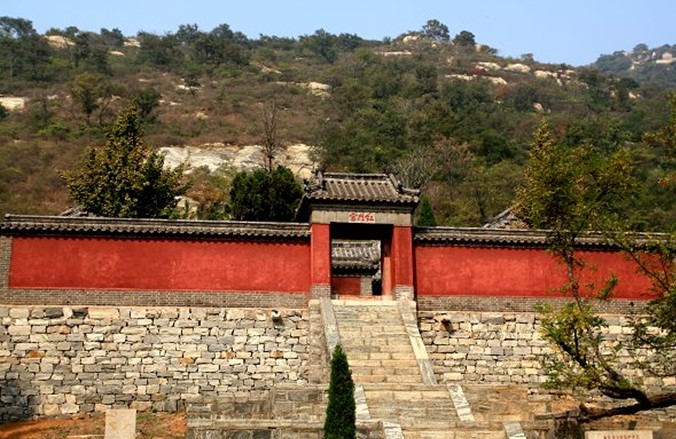 九女堂山東面,是一座赫紅色的山巒,名叫“紅山”,山中泉澗縱橫,林木茂盛,風(fēng)景格外幽美。建國(guó)初期的五十年代,紅山子村就是國(guó)務(wù)院命名的山區(qū)綠化先進(jìn)單位。早在古代,這里就被當(dāng)成風(fēng)水寶地,明代魯王宗室安丘王及其子孫的墓陵就選建在這里。這片陵墓群處在四面環(huán)山的山坳里,共三座大墓,呈鼎足形排列。其中兩座封土完整。最大的一座為園丘形,封土直徑達(dá)80米;另外一座封土東西寬24米,南北長(zhǎng)40米,斜面坡高20米。還有一座已為平地,村民在其上耕地下陷,發(fā)現(xiàn)石砌墓室,墓中有一墓志銘,上蓋銘文題為:“魯府安丘王鎮(zhèn)國(guó)將軍壙志銘”,為篆書淺刻。銘文記載,墓主人是明太祖朱元璋的六世孫、安丘王朱陽釜的第三子、鎮(zhèn)國(guó)將軍朱當(dāng)沿。據(jù)《兗州府志•天潢志》記載,朱元璋封他的第九個(gè)皇子朱檀為魯王,于兗州立國(guó),死后謚為“荒王”;第二代魯王是靖王朱肇?zé)?。宣德二?1427年),靖王封其第一庶長(zhǎng)子朱泰坾為安丘王,謚號(hào)“靖恭”。朱泰坾之子朱陽釜為第二代安丘王,謚號(hào)“莊簡(jiǎn)”,朱當(dāng)沿就是安丘莊簡(jiǎn)王朱陽釜的第三子。成化二年(1466年)六月受封為鎮(zhèn)國(guó)將軍,死后歸葬于兗州魯府東北的屬地九仙山中。其余兩座墓冢因未發(fā)掘,尚不知墓主人是誰。1977年12月23日,墓群被定為“明安丘王墓群”,列為山東省重點(diǎn)文物保護(hù)單位。