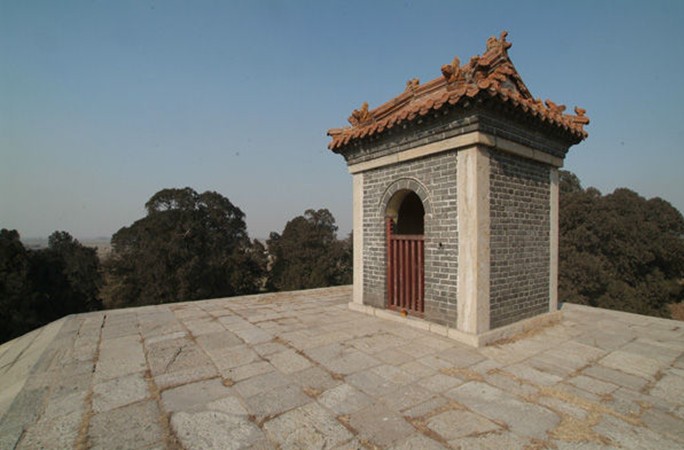 上懸乾隆手收“金德貽祥”匾額。享殿后為少昊陵,底大上小,呈梭臺(tái)形,狀如金字塔,陵墓闊28.5米,坡高15米,頂方11米,陵墓表面為石板砌筑。陵頂筑有小廟一座,內(nèi)供漢白玉石雕少昊像,為宋宣和時(shí)遺物。陵神道南約50米處,有宋代為少昊之父軒轅黃帝而建的景靈宮遺址。側(cè)有“萬人愁”石碑,碑高7.05米,寬3.76米,厚1.2米,下有龜趺,共重約140噸,為國內(nèi)罕見,碑無字,傳說為北宋宣和時(shí)建。