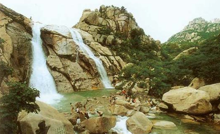 又稱玉龍瀑。在嶗山南部八水河中游,北距上清宮約1公里。周圍巖壁峭立,八水河至此,沿20米高、10余米寬的絕壁懸空倒瀉,噴珠飛雪,狀如玉龍飛舞。瀑布落下十幾米,與石壁相擊,分數(shù)股跌入潭中。碧水凝寒,清澈見底,潭旁巨石上鐫“龍?zhí)镀?rdquo;三字。大雨過后,山洪暴注,飛騰叫嘯,更為壯觀,故有“龍?zhí)秶娪?rdquo;之稱。周至元有詩贊曰:“凌空亂濺沫,疑是玉龍飛。白掛虹千仞,青山環(huán)一圍。拋來珠落落,舞處雪霏霏。游客貪清賞,斜陽不忍歸。”