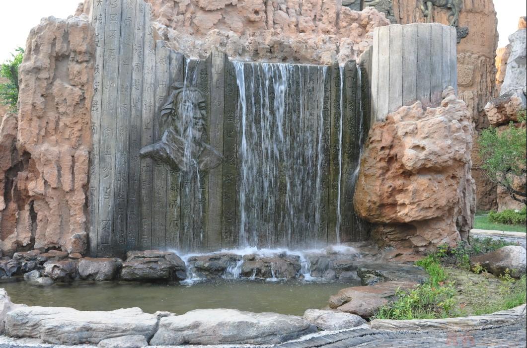 游客穿過春秋版圖廣場來到儒家區(qū),一座23.8米高的孔子像依山而建,形態(tài)逼真。山上結合石雕與文字表述孔子一生的經(jīng)歷。地面上則采用古書竹卷的形式進行布局,刻論語于其上,72賢人弟子坐落于此,再現(xiàn)孔子“杏林授徒”的春風和煦景象。