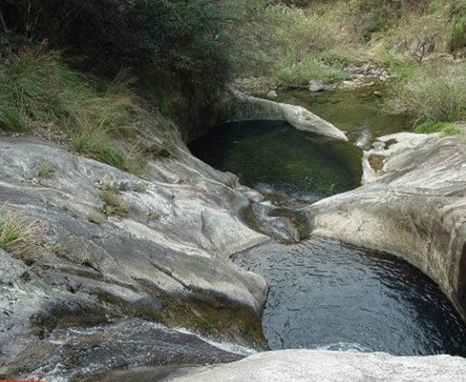 九井溝旅游風(fēng)景區(qū),位于皖、鄂、贛三省交界處的安徽省宿松縣隘口鄉(xiāng)原龍王村境內(nèi),現(xiàn)已改名為九井溝村。屬大別山余脈,總面積36.72平方公里。這里既有峰峻石奇、峽谷幽深、水滴石穿的泉中九井和形神兼?zhèn)涞南膳〕?、淋漓波光的雷公潭、白練飛瀉的三疊瀑布,又有嘆為觀止的"石破天驚"、驚奇怪態(tài)的千年羅漢松,還有那至今尚無一人敢窺其顏、敢探其險的龍和大峽谷。