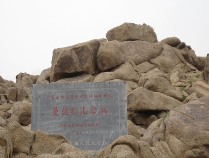 曼德拉山巖畫位于阿拉善右旗孟根布拉格蘇木克德呼都格嘎查境內(nèi)。山巒四周為草原牧場,遠遠望去頗有威嚴壯觀之勢,尤其是山中溝邊的黑色巖石群,起伏蜿蜒,上邊刻有很多世間罕見的巖畫,與山下的茫茫草原組成了一幅奇?zhèn)ス妍惖淖匀划嬀怼?曼德拉山巖畫極為密集,分布在東西3公里、南北5公里的山地上。據(jù)不完全統(tǒng)計,現(xiàn)已發(fā)現(xiàn)巖畫6千余幅,這樣數(shù)量眾多的巖畫在其它地區(qū)極為少見。