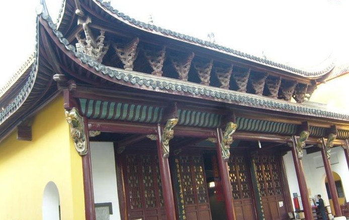 四進(jìn)藏經(jīng)樓,樓高16.2米,面積981平方米,分上、中、下三層。樓上藏有佛經(jīng)萬(wàn)余卷,還有《妙法蓮花經(jīng)觀世音菩薩普門品》附《心經(jīng)》,保存完好。這部經(jīng)書迄今有500余年歷史,經(jīng)書中還有多幅佛像和普渡眾生像。樓下為法堂,供講經(jīng)說(shuō)法和重大宗教活動(dòng)之用。中層是西方三圣像。