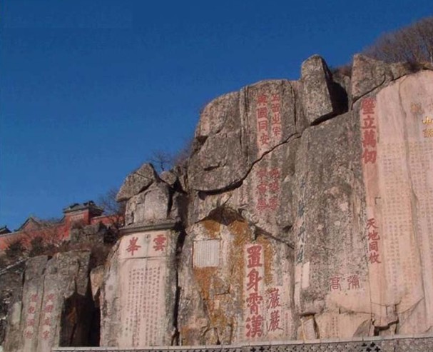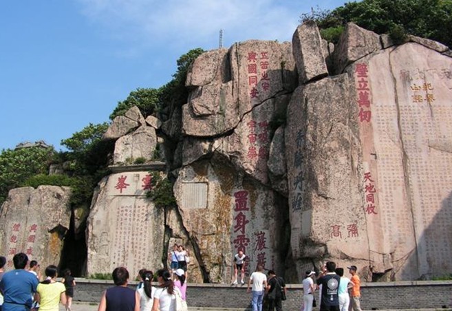 大觀(guān)峰和云峰上題刻遍布,版權(quán)所有山東聊城聊之旅國(guó)際旅行社有限公司,轉(zhuǎn)載必究!重重疊疊,能識(shí)者80余處。“天日蒼茫”、“呼吸宇宙”、“置身霄漢”、“青碧丹崖”等大字與《紀(jì)泰山銘》輝映;唐劉仁愿、宋趙明誠(chéng)、元徐世隆、明朱衡、清阮元及施閏章等歷代名流題刻歷歷在目。