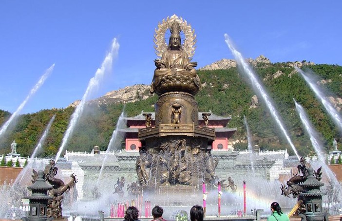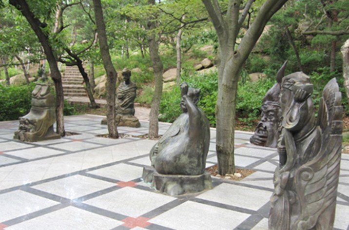 位于張保皋南面的赤山明神銅像,高33.8米,總投資4500萬元,占地十二萬平方米。由大明圣境、仙人棋盤、東峰觀景臺、明神銅像及其它附屬建筑組成。大明圣境牌坊題名由著名書法家劉炳森題寫。牌坊南墻的青銅浮雕“眾仙朝神”眾仙列班朝拜,聽候赤山明神號令的情景。“仙人棋盤”由“神閑氣定”、“運(yùn)籌帷幄”、“成竹在胸”、“觀戰(zhàn)之悅”、“駕鳳臨仙”、“悔恨難解”六個人物小品組成。版權(quán)所有山東聊城聊之旅國際旅行社有限公司,轉(zhuǎn)載必究!主要內(nèi)容是各路神仙會聚赤山對弈的場景。人間的棋局,竟然讓天上的神仙情不自禁,于是,喜怒哀樂溢于言表,性情體態(tài)栩栩如生。“赤山明神”銅像高58.8米,面朝浩瀚的黃海,雄壯威武。赤山明神亦稱赤山神,相傳明神本相出于赤山紅門洞。赤山明神威鎮(zhèn)四海,法力無邊,守護(hù)鄉(xiāng)土,福佑大千,功德無量,乃華夏北方庇佑之神。始皇并六國,于贏政二十八年(公元前219年)東巡成山,以求長生不老之藥。途大病,李斯遽祈明神,旋無恙。唐高宗顯慶五年(公元660年),唐政府幫助新羅人(今韓國)打敗高麗和百濟(jì),統(tǒng)一朝鮮半島,自此唐和新羅非常友好,關(guān)系密切。很多新羅人來到唐朝學(xué)習(xí),做官,做生意,出苦力,當(dāng)兵,做船工,當(dāng)奴婢,有的長期居住在中國,主要分布在東南沿海和大運(yùn)河沿岸地區(qū),特別是和新羅僅一海相隔,相距不足200海里海上交通樞紐赤山浦(今石島灣),居住的新羅人就更多了。法華院宣講《法華經(jīng)》時,“四方眾信及有緣施主都會聽,道俗老少尊卑都是新羅人。”(據(jù)《入唐求法巡禮行記》一書)為了對新羅人進(jìn)行管理,特設(shè)了“勾當(dāng)新羅所”。新羅人除去赤山法華院參拜佛祖,祈求保佑外,也去紅門參拜赤山神。尤其在赤山法華院建立之前和拆毀之后,主要參拜的是赤山神,赤山神也就不分國界施恩于新羅,因此新羅人就把他當(dāng)作自己的神。稱之為“新羅神”大韓民國文化部、海運(yùn)航海廳、全羅南道韓國文化藝術(shù)振興院編著的《張保皋》一書中說:“有關(guān)日本九州博多太守府的史書記載,圓仁弟子按照宗師遺囑建立的比睿山赤山禪院里繪制的‘新羅神’臨近寺剎(例:圍城寺和三井寺)里供奉的新羅國的‘大明神’等有關(guān)記載,都明確無誤地說明了張保皋人把日本比睿山赤山禪院里供奉的‘赤山神’當(dāng)作自己的神——‘新羅神’了。該書還說:“在博多太守府內(nèi),常駐有許多從事貿(mào)易的新羅人,而在此之前,就定居在九州一帶的新羅人,也多從事貿(mào)易業(yè)。”張保皋對日本的影響,在其后日益明顯,如前所述的赤山禪院比睿山周圍的寺剎里,供奉的象征著保護(hù)財富,帶來運(yùn)氣,保護(hù)航海安全的“新羅神”(赤山神),說明新羅人以及張保皋所組織國防貿(mào)易船隊,是把“赤山神”當(dāng)作自己神了。唐文宗開成三年(公元838年),東瀛天臺宗三世座主圓仁(慈覺大師)隨遣唐使赴唐求法數(shù)載,曾三赴赤山拜謁。歸途中,于滄海屢遭劫難,幸明神顯靈,方化險為夷,且保全經(jīng)典數(shù)百卷。圓仁歸國,遂以赤山明神為天臺宗庇佑之神供奉,其后弟子秉承其旨意,于京都修一寺院,名之曰:“赤山禪院”。而后,赤山明神漸為東瀛等國所崇拜,乃至波斯、大食等區(qū)域。至今,日本、韓國等寺院仍多供奉赤山明神,以福佑天下,普渡蒼生。 據(jù)《后漢書》載,赤山明神是中國古代原北方系鮮卑族之保護(hù)神。版權(quán)所有山東聊城聊之旅國際旅行社有限公司,轉(zhuǎn)載必究!他不僅是中國民間的保護(hù)神,也是日本、韓國,甚至波斯、大食(阿拉伯)等諸多國家民間的保護(hù)神。尤其是韓國、日本的許多禪院里如今仍供奉著赤山明神。