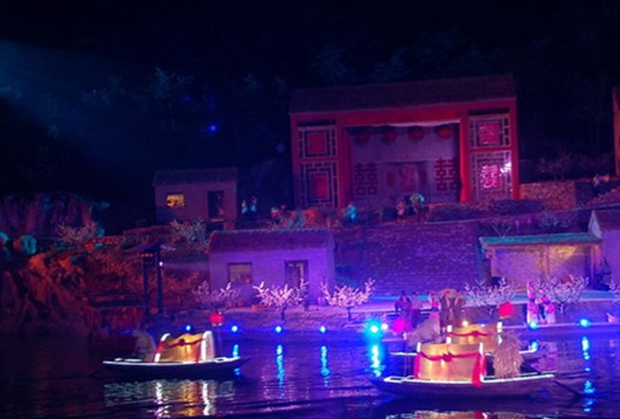 劇場以觀眾為中心,前后運行,360度旋轉(zhuǎn),四周為不同形式的大舞臺,山水相連,親近自然,觀眾坐不離席就可以從各個角度欣賞精彩節(jié)目。演藝聘請頂尖編導(dǎo),陣容強(qiáng)大,演員達(dá)600余人。由國家一級文藝、雜技等著名演員為觀眾呈現(xiàn)驚險刺激、精彩絕倫、震撼人心的夢幻視覺盛宴,使未曾走出國門的人能在威??吹匠咕S加斯之外看不到的世界頂級特技表演。演出精彩不斷,無與倫比,是迄今國內(nèi)最精彩的山水實景演出。