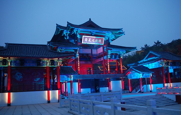 《神游華夏》大型演藝,是由山東威海華夏集團(tuán)斥資3.2億元,邀請著名導(dǎo)演趙安聯(lián)手打造的世界首個360度旋轉(zhuǎn)行走式大型山水實景演藝劇場。