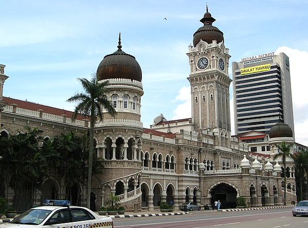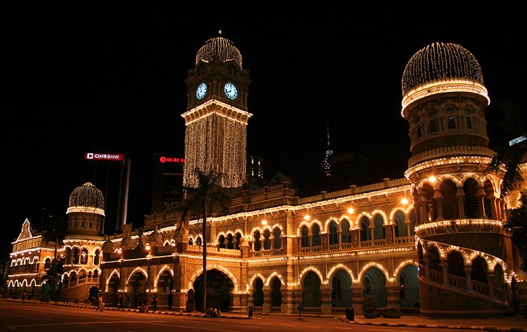 蘇丹亞都沙末大廈是高等法院及最高法院所在地,是吉隆坡的標志性建筑。1897年建成,曾經(jīng)是殖民者的總部。當初設計這幢大樓的兩名設計師都曾在印度呆過一段時日,他們把大樓設計成印度和阿拉伯風格奇妙的混合體。樓的中央有一個40米高的鐘樓,鐘樓的造型類似英國的“大本鐘”,被稱為馬來西亞大本鐘,但在鐘樓的頂部加上一個金色的半球形圓頂。