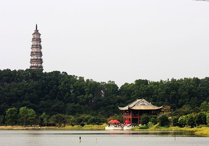 太平塔坐落在彰發(fā)山的皖光苑內(nèi)。據(jù)舊志記載:“太平塔始建于晉咸和間(326-334年),寺前有太平塔,塔前有真武殿,殿后有玉皇閣、石華表?!?太平塔為七層八樓閣式磚塔,高43米,磚仿斗拱結(jié)構(gòu),外旋中空,弧檐翹角。塔體內(nèi)外壁鑲嵌磚雕佛像近千尊,形象生動(dòng)。