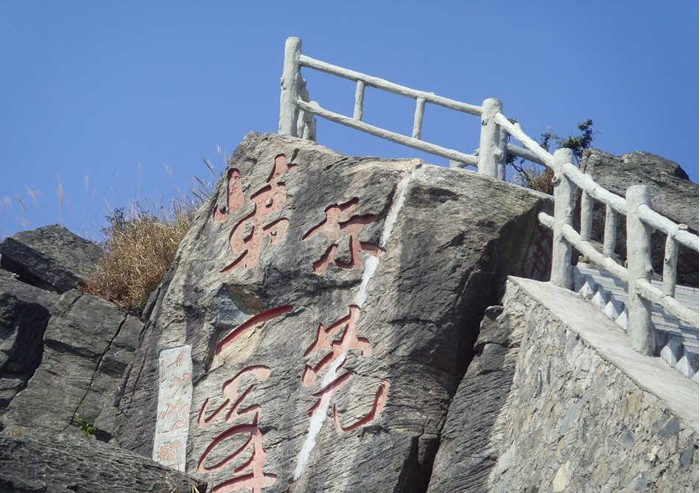 觀花樓是一個(gè)仿古建筑的亭臺,這里是觀賞銀屏牡丹的最佳位置。遺憾的是現(xiàn)在已經(jīng)是深冬季節(jié),銀屏牡丹也只剩下了一桿枯枝。站在亭臺看對面的懸崖上題寫著:“銀屏奇花”四個(gè)字,順著奇字看上去,大約一米之高處就是銀屏牡丹生長的地方。