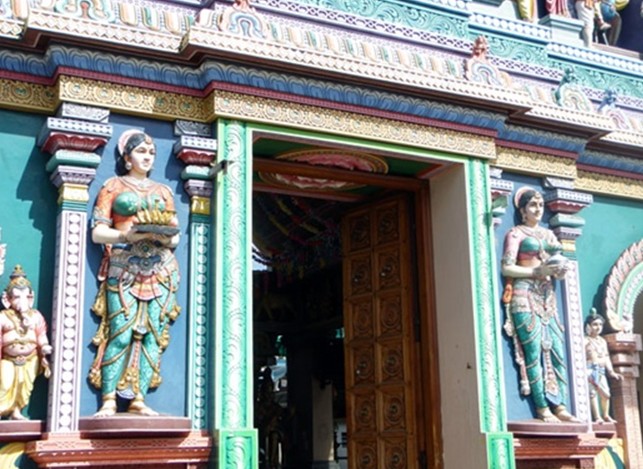這座南印度風格的神廟建于1859年,并在1983年重建。它的獨特之處在于屋頂鑲嵌的48塊玻璃板,它們的角度剛好能讓陽光從各方向照射進來。丹達烏他帕尼興都廟歷來最熱鬧的時候是在大寶森節(jié)和九霄節(jié)。