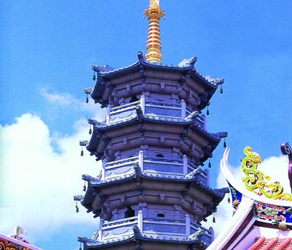 蓮山雙林禪寺又稱(chēng)雙林寺,創(chuàng)建于1898年,是新加坡的古跡之一。雙林寺是為紀(jì)念佛陀釋迦牟尼的誕辰和涅槃而建。以“雙林”代表大乘涅槃之“常樂(lè)我凈”,以“蓮山”表示僧伽叢集如林,值得世人推崇高瞻。雙林寺具有濃厚的閩南式傳統(tǒng)建筑風(fēng)格,初建時(shí)按古廟的禪宗叢林布局,后修復(fù)為完整的佛教叢林建筑,有牌樓、照壁、半月池、山門(mén)、天王殿、大雄寶殿、法堂、龍光寶塔。寺前照壁上題有“南無(wú)觀世音菩薩”七個(gè)楷書(shū)貼金字。