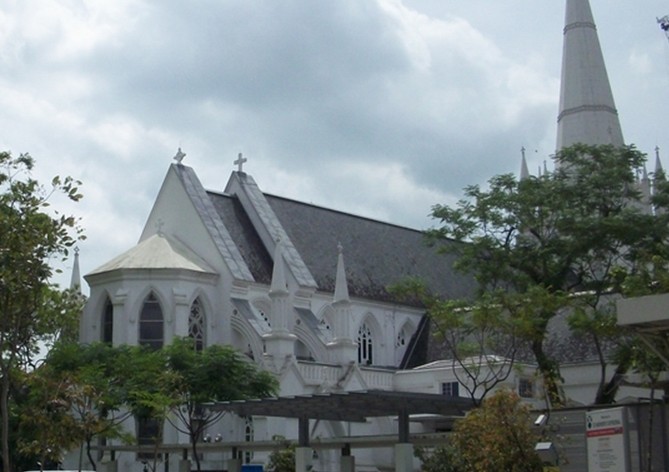 一座潔白的歌特式教堂,高高的尖頂直插藍(lán)天。像一位高大而圣潔的神的使者,他默默佇立在喧囂的市中心,卻讓每一個(gè)見(jiàn)到他的人,心中都會(huì)不由自主地生起向往和敬畏。這就是新加坡最著名的一座教堂——圣安德烈教堂。 潔白亮麗的外墻是圣安德烈教堂最傲人的特點(diǎn)之一。經(jīng)歷了一百多年的滄桑卻仍舊那么光彩照人,“就是青春無(wú)瑕”。