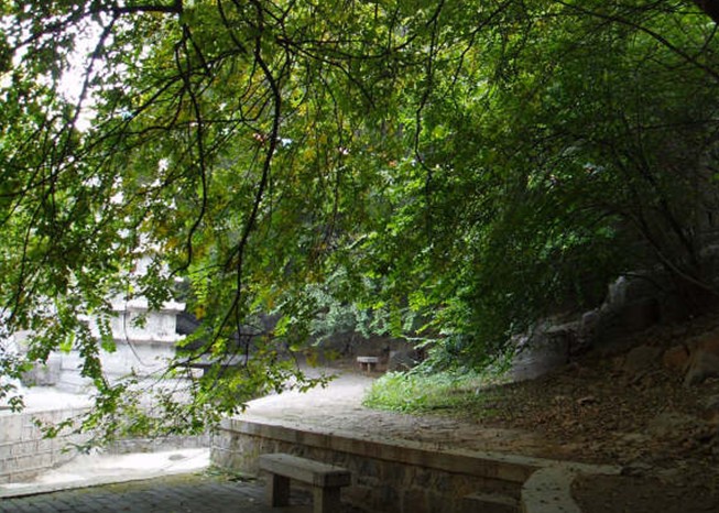 該寺是冠世榴園風(fēng)景區(qū)自東向西的第一個旅游景點(diǎn),俗稱“青檀秋色”,為古峰縣八景之一。據(jù)《峰縣志》記載,版權(quán)所有山東聊城聊之旅國際旅行社有限公司,轉(zhuǎn)載必究!唐朝以前名“云峰寺”。唐時青檀樹遍植山谷,遮天蔽日,故改名為“青檀寺”。從唐代到宋、元時期,寺廟香火日盛,谷中置寺廟多處,故有僧屋如巢之說。到明、清時期,此地為文人墨客,達(dá)官貴人游玩勝地。清末民初,寺毀于兵火?,F(xiàn)青檀寺為1985年重建。門坊為三門四柱雙垂飛檐斗拱,木質(zhì)結(jié)構(gòu)與鋼筋水泥混合結(jié)構(gòu)的仿古建筑。門上方一黑色大理石鑲嵌橫匾,題“青檀秋色”四字,為浙江省副省長劉亦夫書。門坊內(nèi)是長約1.5公里的狹谷,谷內(nèi)樹齡在千年以上青檀樹有36棵,百年樹齡的不計(jì)其數(shù)。狹谷盡頭即為青檀寺。廟門匾額“青檀寺”三個字,為書法家舒同手筆。寺院占地面積1050平方米,建筑面積330平方米。主體建筑為大雄寶殿五間,飛檐斗拱,殿內(nèi)供奉三世佛。殿前院內(nèi)有一株銀杏樹,樹齡逾千年,至今干壯葉茂。殿前有一龍窯泉,水從大殿基地流出。西有三間配房,東有長亭。亭旁的東山巖壁上有文峰山人題寫的摩崖石刻“忘歸”、“龍”二處。大殿后石壁上刻有“還我河山”四個大字,上有岳飛養(yǎng)眼樓,相傳宋代民族英雄岳飛因患眼疾曾在此養(yǎng)病,宋時建樓紀(jì)念,毀于“文化大革命”時期。1985年重建,建筑面積為112平方米,樓內(nèi)塑有岳飛坐像。