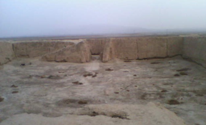 許三灣城址平面為方形,城東西長(zhǎng)66米、南北84米,南面開(kāi)門(mén),有甕城。城內(nèi)有建筑基址。城周?chē)心谷喝?,有帶礫石封土的墓葬3000余座,密集處封土相互連接。在城西3公里的五道梁,分布墓葬1000多座。城北1.5公里有圓形封土墓200多座。城內(nèi)外地表散見(jiàn)有灰、紅色陶片,城內(nèi)曾出土過(guò)大量的“五銖”、“貨泉”、“開(kāi)元通寶”等古錢(qián)幣和銅箭頭、銅帶鉤等。