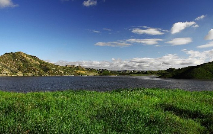 昆都侖水庫群山環(huán)抱,站在大地之上,望群山翠綠,巒巒疊嶂湖光漣猗,仿佛是嵌在群山之上的一塊明珠,真是高峽山平湖。在碧水之上可以泛舟,可以垂釣,可以乘艇兜風(fēng)鳳景。