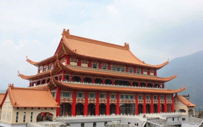 靈巖山寺位于南投臺(tái)埔里鎮(zhèn)中正路105號(hào),1984年由妙蓮法師創(chuàng)建。主要建筑有念佛堂、東西廂寮房、五觀堂、愛(ài)道講堂、東西客堂、凈宗講堂、觀音殿、華嚴(yán)殿、閱經(jīng)樓、藏經(jīng)閣、護(hù)法殿、山門(mén)、凈宗學(xué)佛院等。先淤1995年建成念佛堂。寺院建筑中尤以1996年建成的大雄殿為壯觀宏偉。大殿占地面積近五千平方米,殿高十多層,設(shè)有鐘樓、鼓樓、大講堂,可同時(shí)容三千人參修。大殿供奉的釋迦牟尼佛像,重達(dá)50頓,金相巍巍,供在大殿的四樓。目蓮、阿難塑像小於釋尊侍立兩側(cè),十六羅漢立象又小於目蓮、阿難,侍立釋尊左右。