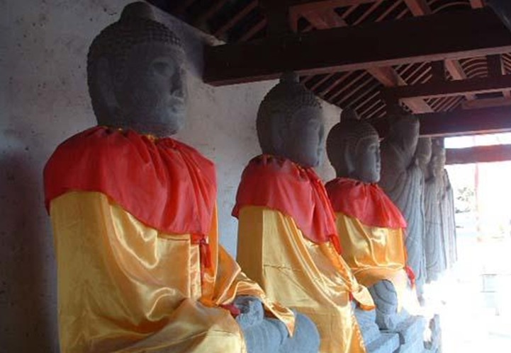 1962年,在石佛前田中發(fā)現(xiàn)石質(zhì)佛座1塊,龕長36厘米,寬35厘米,厚11厘米,刻“大齊天統(tǒng)元年歲次丁亥四月一日辛丑朔比丘?曇進兄弟二人敬造”。天統(tǒng)元年為公元565年。1977年又在寺院舊址中出土1塊高浮雕一佛二菩薩造像碑,系青石質(zhì),呈蓮瓣形,頂端左右雕有飛天6個,中間石佛像高65厘米,其兩側(cè)菩薩像各高47厘米。造像屬唐代風(fēng)格,當(dāng)屬寺內(nèi)舊物,現(xiàn)存于臨淄區(qū)文物管理所內(nèi)。1984年7月公布為市級重點文物保護單位。石佛堂北魏石佛 在臨淄區(qū)城關(guān)鎮(zhèn)石佛堂村北側(cè)有殘破佛堂3間,系磚、石、木結(jié)構(gòu),灰瓦覆頂,一門二窗,內(nèi)飾壁畫,立有石佛4尊。堂室中央置彌勒佛1尊,高1.14米,寬0.45米,厚0.24米,背倚刻有40個佛像的石屏;西間石佛3尊,缺首,雕在一塊蓮瓣狀石屏上,石屏刻有35個佛像,其上端左右雕立式飛天和蟠龍,結(jié)構(gòu)謹(jǐn)嚴(yán),組為一體。