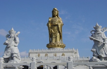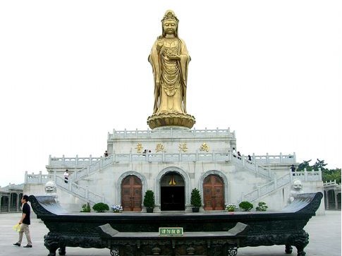 南海觀音露天銅像位于普陀山之東南的龍灣崗巔。菩薩臉如滿月,眉目清秀,左手托法輪,右手結(jié)無畏印,顯現(xiàn)大慈大悲相,光耀天日,壯麗無比。像高33米,重70余噸,乃當(dāng)今觀音銅像之最,也是海天佛國的象征。版權(quán)所有聊城聊之旅旅行社有限公司,轉(zhuǎn)載必究!佛像基層是面積1000多平方的功德廳,上層供奉500尊形態(tài)各異的觀音銅像,下層大廳飾有觀音靈異故事的大型黃楊木雕和以普陀山景色為題材的彩玉浮雕,精美絕侖。