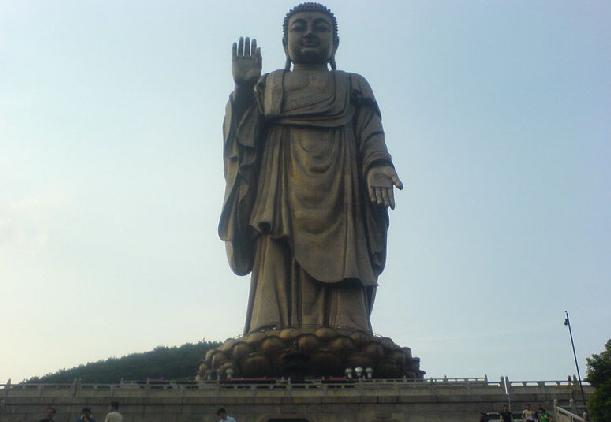 矗立在小靈山南麓的靈山大佛,包括蓮花座在內(nèi)通高為八十八米,相當于一幢三十馀層樓房的高度,比“山是一尊佛,佛是一座山”的四川樂山大佛還要高出十七米,是迄今為止我國最高的巨型佛像。如果加上三層座基,總高度達一百零一點五米。