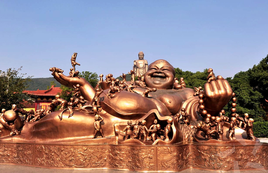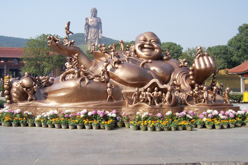 從杏壇廣場往上,攀218級登云道,看六角古井,觀七級浮雕,于大佛基座游覽靈山佛教文化博覽館。博覽館以神州五方五佛、中華四大佛山、藏傳、南傳、漢傳三大佛教語系以及佛教文化藝術(shù)為展覽主線,充分展示博大精深的佛教文化。自博覽館乘電梯而上,游客還可參與“平安抱佛腳”活動,登高望遠,憑欄臨風(fēng),近可觀景區(qū)全景,遠可觀太湖湖光山色。從大佛足部步行而下,可參觀靈山萬佛殿。靈山萬佛殿供奉著近萬尊靈山大佛之真身小佛像,供游人瞻拜迎請。2000年靈山景區(qū)新增兩處精彩景點。大型青銅浮雕“百子戲彌勒”喜慶吉祥,深受游客喜愛。位于大佛腳下二層的靈山隨喜堂是靈山的又一處綜合展示佛教文化的神圣殿堂,將令您嘆為觀止,并有品種多樣的佛教工藝禮品給您選購。