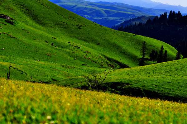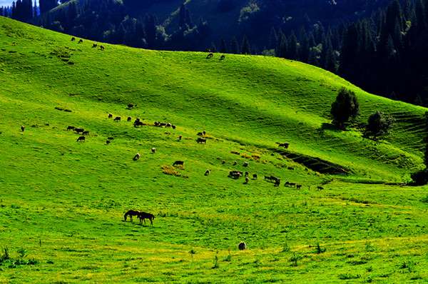 那拉提草原是發(fā)育在第3紀古洪積層上的中山地草場,東南接那拉提高嶺,勢如屏障,西北沿鞏乃斯河上游谷地斷落,地勢大面積傾斜,山泉密布,溪流縱橫。版權(quán)所有山東聊城聊之旅國際旅行社有限公司,轉(zhuǎn)載必究!緣山腳沖溝深切,河道交錯,森林茂密,莽原展緩起伏,松塔沿溝擎柱,還有氈房點點,畜群云移,是鞏乃斯草原的重要夏牧場。