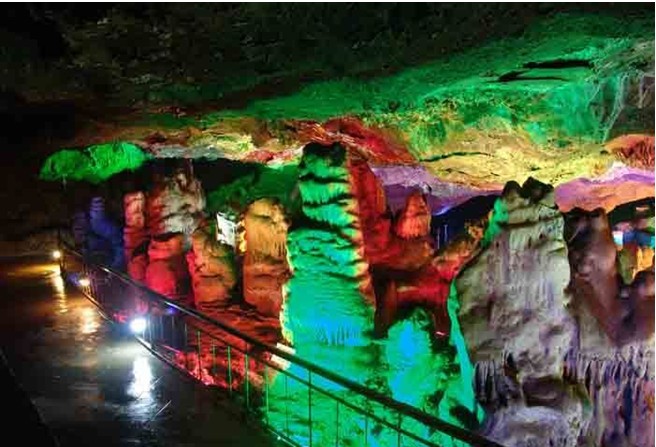 “靈丹妙藥”:從白膚潭往上走,到了巖臺便可觀賞第二級瀑布“靈丹妙藥”。這級瀑布的峭壁像刀削般整齊,跌巖不大,水勢均勻,水質(zhì)清純,是天然的礦泉水。據(jù)當(dāng)?shù)厝苏f常喝此水能防病治病,故命名為“靈丹妙藥”。