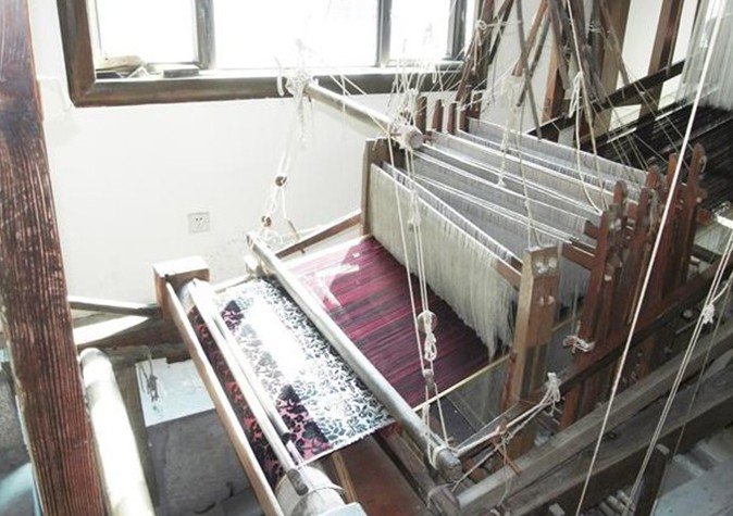 沿絲路右側(cè),一組沙漠駝隊的浮雕,形象生動,古樸渾厚,與半墻有機結(jié)合,顯示了漢唐以來絲綢之路的風光特色。“古代館”的絲綢陳列,以其珍貴的絲綢文物及模型、圖片,展示了新石器時代晚期絲綢的起源,直到明清時期絲綢生產(chǎn)的沿革,它是一部濃縮了的中國古代絲綢史。絲綢離不開蠶桑,“蠶桑居”是根據(jù)近代農(nóng)家養(yǎng)蠶載桑的真實情景和桑園再造??邕M“織造坊”,又是另一番景象,在這里可以見到各種類型的古代織機和傳統(tǒng)工藝的手工操作表演,猶如身臨明清時期蘇州絲綢業(yè)“東北半城,萬戶機聲”的繁榮境地??椗畟兩碇叛b作現(xiàn)場表演。天鵝絨織機、漳緞織機、云錦織機、腳踏繅絲機、纟革絲機,都在進行運轉(zhuǎn)操作,古代云錦、彩經(jīng)絨、纟革絲等著名絲綢品種的織造過程,在這里都得到充分演示。有一種工藝獨具特色,讓人看后舍不得離開,一塊巨大的石元寶下的凹槽里,放著纏有絲織品的木棍,一位藝人將兩腳踏在石元寶下的兩個突出部,然后晃動石元寶,通過碾壓,使絲綢變得柔軟平挺。光澤可鑒。這就是江南絲織工藝一絕的絲綢砑光處理。