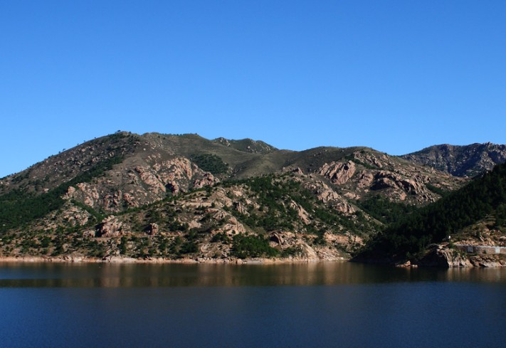 打虎石水庫(kù)位于寧城縣西部,老哈河支流 ── 黑里河下游,控制流域面積540平方公里,總庫(kù)容1.2億立方米,是內(nèi)蒙古自治區(qū)境內(nèi)的以灌溉為主,兼顧防洪、發(fā)電、養(yǎng)魚、旅游等綜合利用的大型水庫(kù)之一,屬水利部一級(jí)管理單位。 打虎石水庫(kù)橫斷黑里河。由于黑里河水流經(jīng)林區(qū),沿途植被茂密,因此庫(kù)區(qū)蓄水含沙量極低,水體蔚藍(lán)清澈。近6000畝的水面坦蕩遼闊,碧波萬頃,水天一色。版權(quán)所有山東聊城聊之旅國(guó)際旅行社有限公司,轉(zhuǎn)載必究!每逢盛夏時(shí)節(jié),群山倒影,波瀾不驚,鳥飛魚躍,漁船點(diǎn)點(diǎn),仿佛人間仙境。