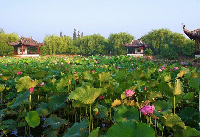 蠡園是蠡湖景區(qū)中風(fēng)景最盛的地方,游人游覽湖景,無不在此駐足賞景,長長的柳堤,臨水的長廊,細(xì)巧的小橋,絢麗的軒亭,好一幅"層波疊影,雪浪煙綠"的圖畫!