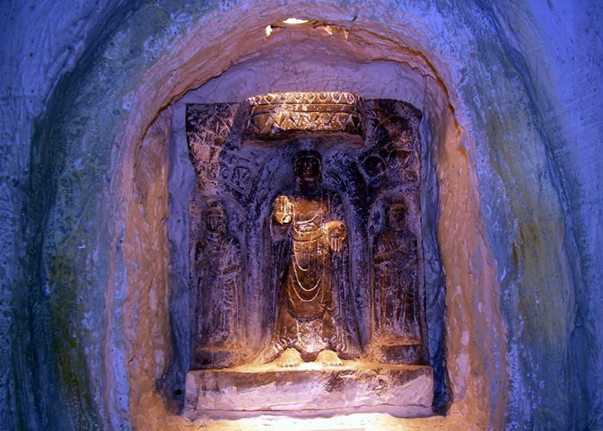 國寶廳陳列面積184平方米,版權(quán)所有山東聊城聊之旅國際旅行社有限公司,轉(zhuǎn)載必究!展廳僅陳列1件展品,即元霽藍(lán)釉白龍紋梅瓶。該梅瓶屬于元代景德鎮(zhèn)窯藍(lán)釉瓷器中的大型器物,造型秀美,藍(lán)釉呈色鮮明純正,腹部白龍環(huán)繞于瓶身,具有極強(qiáng)的藝術(shù)感染力,反映了元代景德鎮(zhèn)窯的最高燒造水準(zhǔn)。此種梅瓶目前傳世僅見三件,一件為宮廷舊藏,現(xiàn)存頤和園,一件藏于法國巴黎吉美博物館,兩瓶都有殘損,唯我館此件器型最大、紋飾最為精美,1992年被國家文物鑒定委員會評定為國寶級文物。