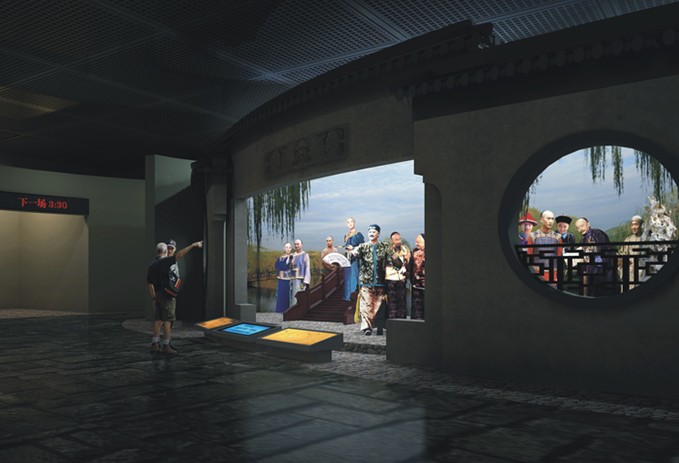 展廳平、立面長短弧線與直線的有機(jī)結(jié)合,象征揚州歷史連綿不斷,充滿無限生機(jī)和活力。展覽雖沒有刻意尋求造型元素和藝術(shù)符號來強(qiáng)化主題,但由形、色、光構(gòu)成的整個藝術(shù)空間,始終充滿著揚州文化特有的品質(zhì)和風(fēng)格。