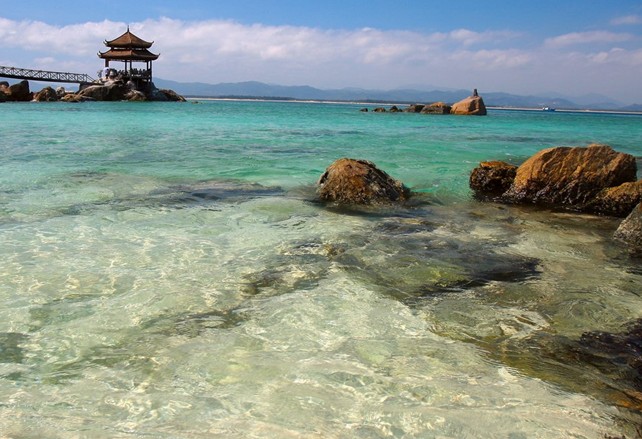 這里,崖洲灣弧弦百里、碧波萬(wàn)頃,鰲山云深林翠,巖奇洞幽,遍布神工鬼斧,大小石群。山海之間宛如一副古樸優(yōu)美的山海圖畫(huà)。歷代文人騷客莫不鐘情于這一方山水。1962年郭沫若游覽“大小洞天”,對(duì)景區(qū)的山光海色贊嘆不已,在《游崖縣鰲山》一詩(shī)中譽(yù)之為“南溟奇甸”。大小洞天風(fēng)景區(qū)有歷史悠久的名人勝跡。唐代高僧鑒真率日本留學(xué)僧容睿、普照及弟子祥彥、思托等35人第五次東渡日本,海上遇臺(tái)風(fēng)漂流萬(wàn)里至此登岸,并修造大云寺,傳播佛教文化;宋末元初女紡織家黃道婆往返與崖州灣,把先進(jìn)的植棉、紡棉技術(shù)帶至中原大陸,留下千秋史話(huà)。