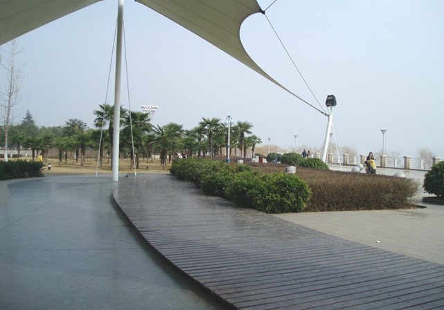 “大氣、精致、寧靜、開敞、簡潔”的武漢江灘公園,形成“一軸、兩帶、四區(qū)”格局,即江灘景觀軸;堤防景觀帶、濱江親水帶;休閑活動區(qū)、中心廣場區(qū)、體育運動區(qū)和園藝景觀區(qū)。音樂噴泉、水上樂園、戲水梯臺等處處體現(xiàn)了親水的主題,讓人們既感受到長江恢宏的氣勢,又能體味到江南小橋流水的韻味。
