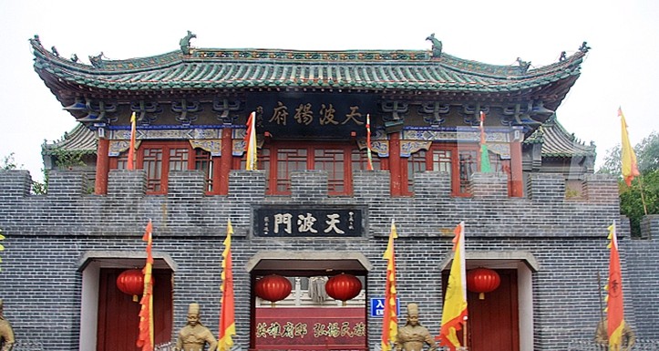 天波楊府位于風(fēng)景秀麗的河南省開(kāi)封市楊家湖畔,東依北宋皇宮遺址龍亭風(fēng)景區(qū),西臨中國(guó)翰園和清明上河園。占地2.6公頃,是為紀(jì)念和頌揚(yáng)北宋忠臣楊家諸將業(yè)績(jī),于1994年重建的一座仿宋園林樓閣建筑。據(jù)史書(shū)記載,天波楊府是北宋抗遼名將楊業(yè)的府邸,因位于京城西北隅天波門(mén)的金水河旁,故名天波楊府。