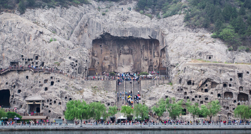 龍門石窟是中國三大石窟之一(另外兩大石窟為:山西云岡石窟、甘肅敦煌莫高窟),位于洛陽市城南6公里的伊闕峽谷,這里香山和龍門山兩山對峙,伊河水從中穿流而過,古稱“伊闕隋煬帝遷都洛陽后,將把皇宮的正門正對伊闕,從此,伊闕便被人們習(xí)慣的稱為龍門。龍門自古為險要關(guān)隘,交通要沖,向為兵家必爭之地。因山清水秀,環(huán)境清幽,氣候宜人,被列入洛陽八大景之冠,唐代大詩人白居易曾說:“洛都四郊,山水之勝,龍門首焉”,此處素為文人墨客觀游勝地;又因石質(zhì)優(yōu)良,宜于雕刻,故而古人擇此而建石窟。這里青山綠水、萬象生輝,伊河兩岸東西山崖壁上的窟龕星羅棋布、密如蜂房。