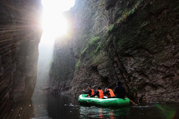 龍?zhí)洞髰{谷是洛陽黛眉山世界地質公園的核心景區(qū),是一條以典型的紅顏掌故群地質地貌景觀為主的峽谷景區(qū)。谷內關峽相望,潭瀑連珠,壁立萬仞,峽秀谷幽,經過12億年的地質沉淀合260萬年的水流切割旋蝕所形成的高峽甕谷、山崩地裂奇觀,堪稱世界一絕,人間少有。享有“中國嶂谷第一峽”、“古海洋天然博物館”、“峽谷絕品”和“黃河山水畫廊”等美名。