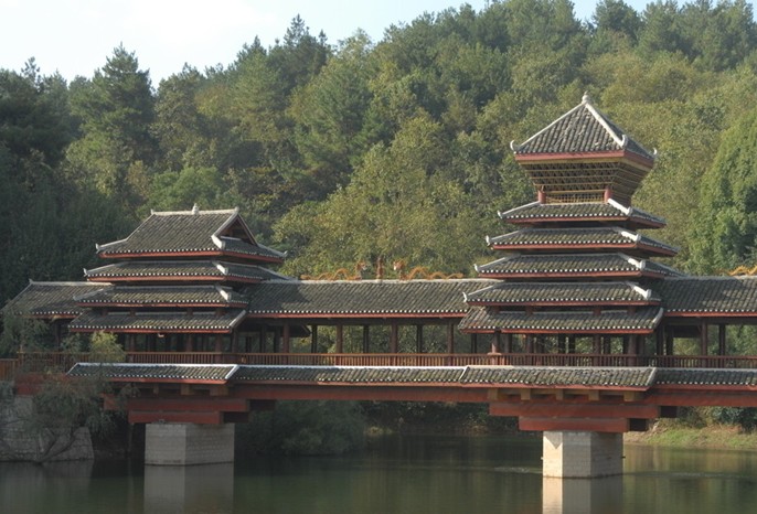 花橋是侗鄉(xiāng)跨越溪河、避雨納涼、點(diǎn)綴風(fēng)景,集多種用途于一體的橋梁。它的起源還流傳著許多優(yōu)美的神話傳說(shuō)。