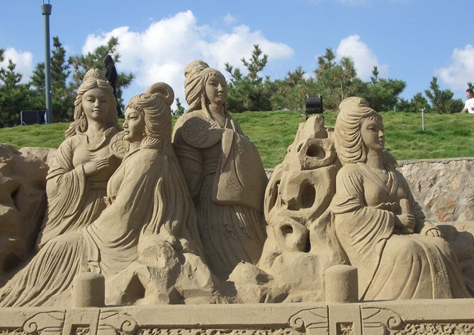 2004年第六屆中國(guó)舟山國(guó)際沙雕節(jié)以"至愛(ài)永恒(Love Forever)"為主題,以"愛(ài)漫人間"、"華夏戀曲"和"西方情緣"為分主題。每組作品由若干個(gè)單體組成,或分散或連接,通過(guò)"愛(ài)"的內(nèi)在脈絡(luò)有機(jī)結(jié)合,版權(quán)所有山東聊城聊之旅國(guó)際旅行社有限公司,轉(zhuǎn)載必究!營(yíng)造出了一個(gè)"愛(ài)的大觀園"。本屆沙雕節(jié)的沙雕展區(qū)長(zhǎng)250米,寬55米,用沙量達(dá)2萬(wàn)多立方米,規(guī)??涨埃菤v屆之最。沙雕展區(qū)的現(xiàn)場(chǎng)布局呈花園式分布,改變過(guò)去單一式的進(jìn)出口布局,整個(gè)游覽線路曲徑通幽,按園林式設(shè)計(jì)。本屆沙雕節(jié)在沙雕作品上首次實(shí)施人工造霧、造水,使人物、樓臺(tái)、山景等形象更加逼真。本屆沙雕節(jié)首次邀請(qǐng)著名節(jié)目主持人李湘為沙雕節(jié)形象代言人,由李湘來(lái)宣傳沙雕、推介沙雕。