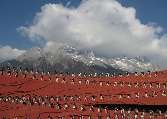 《印象麗江》導(dǎo)演張藝謀:“這里有一個(gè)世界上最大的一次幕間休息,但觀眾并沒(méi)有離開(kāi)演出所營(yíng)造的情境。你可以去河邊小坐、品茗小酌,還可以去討價(jià)還價(jià)、拍照留影,但不論你做什么,你已經(jīng)在和納西人民的交往之中。”