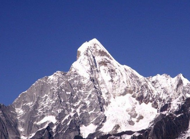 四姑娘山由海拔6250米、5664米、5454米、5355米的四座毗連的山峰組成,坐落在橫斷山脈的東北部,耶蛛山脈的中段,四川省小金縣和汶川縣的交界處主峰么妹峰,海拔6250米,位于東經(jīng)102.90°,北緯31.1°,是邛徠山的最高峰,山峰主要由石灰?guī)r構(gòu)成,由于大自然常年的風(fēng)化剝蝕,使山體十分陡峻,刃脊上多懸崖峭壁。