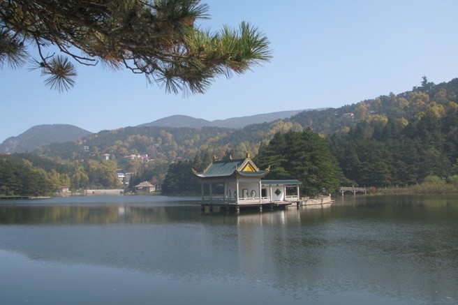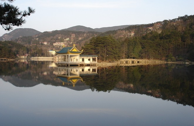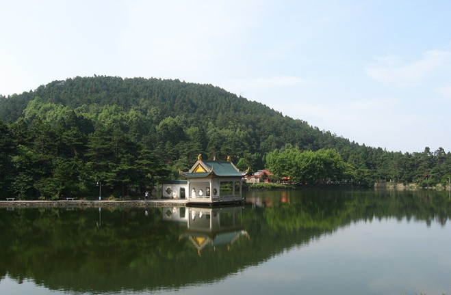 如琴湖的景致美極了!首先映入眼簾的是湖岸及周圍濃濃的綠意。除了遠處牯嶺山坡間那紅紅黃黃的屋頂在綠樹叢梢探頭探腦之外,其余放眼望見的都是醉人的綠。廬山的物種資源豐富,植物分布有亞熱帶叢林,有熱帶常綠闊葉林,有溫帶落葉闊葉林,還有寒帶特征的針葉林,以及一般灌木林、混交林等。所以,不同季節(jié)呈現(xiàn)不同的變化;就是在同一季節(jié),也有多樣化的展現(xiàn)。就拿眼前湖山,滿目蔥蘢不同樹種的林帶來看吧:近水邊是一抹純玉般的翠綠,其后是一片染著鵝黃色的嫩綠,再往外是一幅斑駁夾雜的草青、麥綠,往山頂看去,就是一派似乎染了淡墨的濃濃郁郁的黛綠。難怪團友中有人贊嘆:廬山展現(xiàn)的大自然的綠就像一塊調(diào)色板,綠得深淺有致,版權所有山東聊城聊之旅國際旅行社有限公司,轉(zhuǎn)載必究!綠得層次分明。我們不妨再欣賞湖面:由于這里巒嶺相依,縱橫圍抱,更使這半山湖泊顯得水光閃爍,把遠遠近近的花、草、竹、木、山、樓、亭、橋的倒影都吸納湖里,把多層次多變化的大片綠色也凝結在湖里。我不由吟起一首詩:“湖山湖水兩青青,迎沐東風一片情。小徑廊橋嘉樹美,落花猶自帶詩聲。”在這里真是有“小徑廊橋”的:如琴湖橢圓形的湖心島西邊,就建有一水榭,配建的九曲廊橋與湖岸相連;島上四周蒼松吐翠,有小徑供游人漫步。在這里呼吸著清新沁人的空氣,你真會陶醉在綠的懷抱和詩的意境里。
