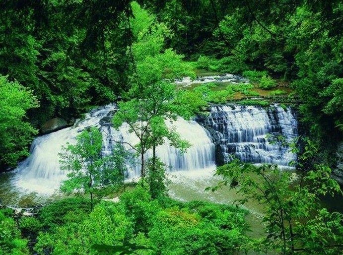 崖旁三峰突起,比肩兀立,水從左峽奪路而出,從46米高的崖頭跌下深潭,然后繼續(xù)奔涌向前。這里,河水仿佛被疊為二折,故俗稱(chēng)疊水河瀑布。