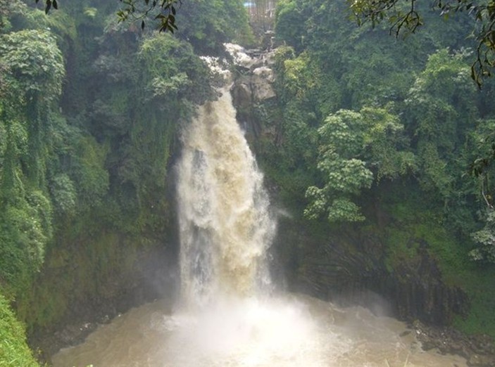 發(fā)源于騰沖縣東北部的大盈江,屬于伊洛瓦底江水系,沿途眾流匯合,水量漸豐。位于騰沖縣城以西1公里,此處四周是懸崖峭壁,大盈江水流經(jīng)此處,從30多米的高巖上跌落,響聲雷動(dòng),水花四濺,形成了“不用弓彈花自散”的壯麗景觀,據(jù)說(shuō)在陽(yáng)光下?,F(xiàn)出七色彩虹,非常漂亮。大盈江從北向南貫穿騰沖壩子,在流經(jīng)云南騰沖縣城西1千米的地面時(shí),遇到1個(gè)巨大的斷層崖。