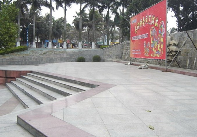 靠近北部灣中路的文化廣場區(qū)由林蔭廣場、露天表演廣場和展覽館三部分構(gòu)成。林蔭廣場綠化選擇具有南方特色闊葉喬木水石榕為主要樹種,這種樹根據(jù)長勢可以修剪成方體或珠體形狀,形成規(guī)矩,整齊的廣場綠色景觀,樹下設(shè)置有簡潔大方,別具熱帶風(fēng)情的“C”形木椅,同時還設(shè)計有造型活潑的閱報欄,露天表演廣場是利用原有地形建成的開敞式的公共文化娛樂和休息場所,面積約2000平方米,依就原地形建有長形的水幕墻、巨型浮雕“海之韻”、露天表演舞臺、音樂茶座、階梯級觀眾看臺、騎樓式店鋪、斜坡式花壇、殘疾人斜坡道等園林設(shè)施,創(chuàng)造了一個優(yōu)雅宜人、景觀獨(dú)特的室外環(huán)境;展覽館是利用原水廠蓄水池改造而成的頂面為球殼形的一座造型十分獨(dú)特的建筑,占地約500平方米,屬無梁磚拱結(jié)構(gòu),既保留了歷史建筑工藝,又可作為公共展覽館,豐富了廣場的文化內(nèi)容。