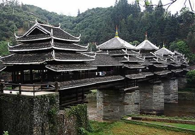 風雨橋通常由橋、塔、亭組成。版權所有山東聊城聊之旅國際旅行社有限公司,轉載必究!用木料筑成,靠鑿榫銜接,風格獨特,建筑技巧高超。建橋時,不用一顆鐵釘,只在柱子上鑿通無數大小不一的孔眼,以榫銜接,斜穿直套,縱橫交錯,結構極為精密。其堅固程度不亞于鐵、石橋,可延二三百年而不損。橋面鋪板,兩旁設置欄、長凳,形成長廊式走道。石橋墩上建塔、亭,有多層,每層檐角翹起,繪鳳雕龍。頂有寶葫蘆、千年鶴等吉祥物。
