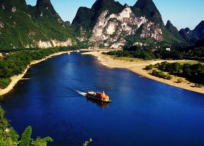 提示:此游船游覽是陽(yáng)朔縣城至普益鄉(xiāng)留公村一段18公里漓江下游水域,需要時(shí)間是3個(gè)小時(shí),中途不能下船,也不停船。