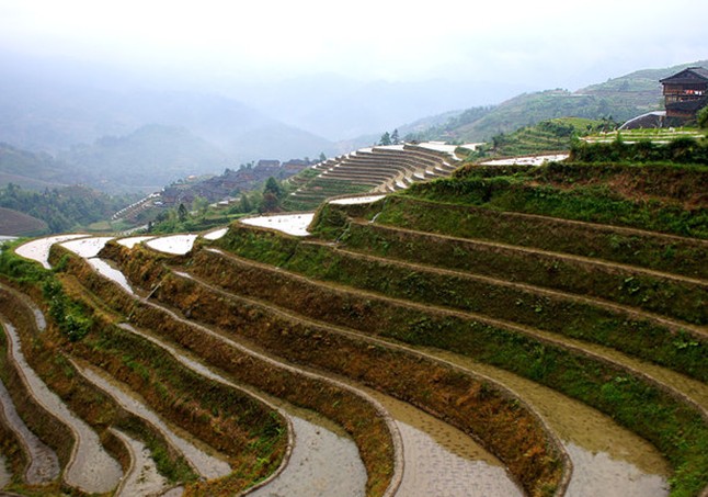 全新的藝術(shù)定位,首創(chuàng)劇場實景藝術(shù)概念,薈萃國家級藝術(shù)主創(chuàng)人員,耗資千萬,精心打造……大型實景歌舞劇《龍脊魂》演藝 2005年4月18日在桂林震撼公演!走進龍脊神秘山寨,了解豐富的民族文化,聆聽千年侗族大歌, 欣賞靚麗的民族服飾,擋不住的風情,盡在《龍脊演藝》在桂林北部巍峨的群山中,居住著壯、侗、苗、瑤等少數(shù)民族從元代起,他們的祖先就在這里開荒種田,他們勤勞勇敢,不畏艱險,世世代代,墾山造田,數(shù)百年來已形成規(guī)??涨?,享譽世界的“龍脊梯田”,而他們多姿多彩的生活習俗,也與龍脊梯田一道成為了世人矚目的風景畫卷。她們,來自那片古老神奇的土地帶來了美輪美奐的民族服飾和動人的歌謠。他們,從萬頃梯田中走來帶著泥土的芳香、勞作的工具和香醇的米酒。《龍脊魂》演藝以現(xiàn)代一流的燈光、一流的舞美,極具沖擊和震撼力的舞臺音響、燈光效果,將少數(shù)民族歌謠、民族舞蹈及少數(shù)民族生活實景三者進行完美融合,從歌、舞、樂多種藝術(shù)形式和多種層面,從創(chuàng)作理念、表現(xiàn)形式和審美視角上進行了全新的嘗試,再現(xiàn)了龍脊梯田古樸壯麗的場景,展示了少數(shù)民族用雙手創(chuàng)造龍脊梯田,代代傳承的龍脊精神和品格。